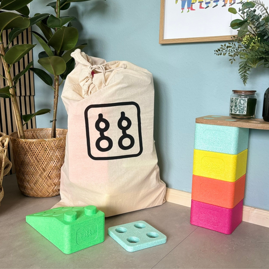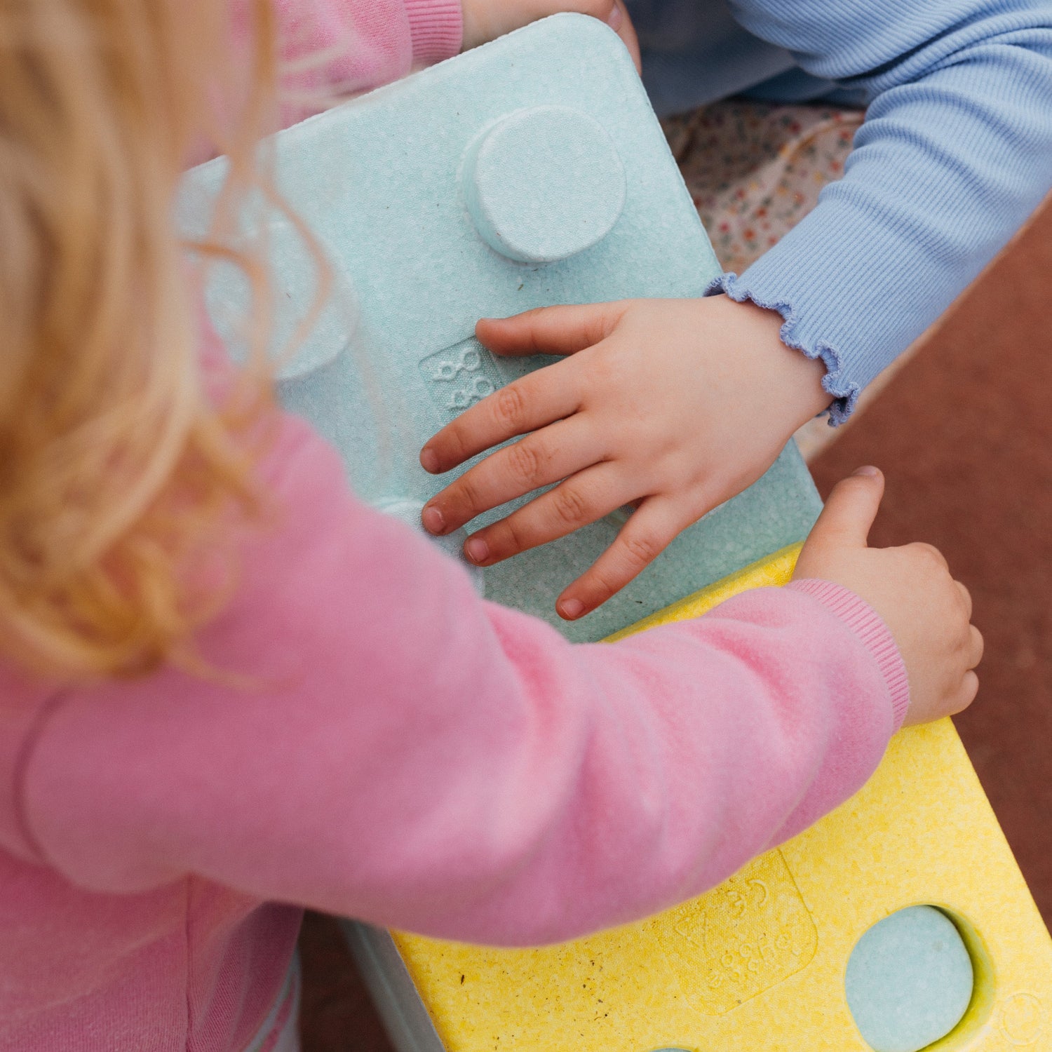 Unsere großen und leichten Spielbausteine lassen sich frei kombinieren, immer wieder neu zusammensetzen und wachsen mit der Fantasie deines Kindes.