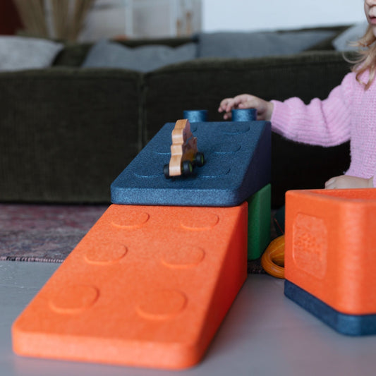 Entdecke unsere XXL-Bausteine, die nicht nur zum Bauen einladen, sondern auch die Fantasie beflügeln. Die Möglichkeit, eigene Welten zu erschaffen, fördert die kreative Denkweise und lässt die Kinder in unbegrenzten Möglichkeiten schwelgen.
