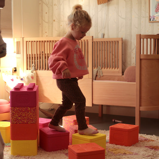 bygge-Steine fördern die Bewegung der Kinder, indem sie sie dazu anregen, sich zu bewegen und Parcours zu bauen und zu balancieren. Dies hilft den Kindern, ihre motorischen Fähigkeiten zu verbessern und ein besseres Körpergefühl zu entwickeln.