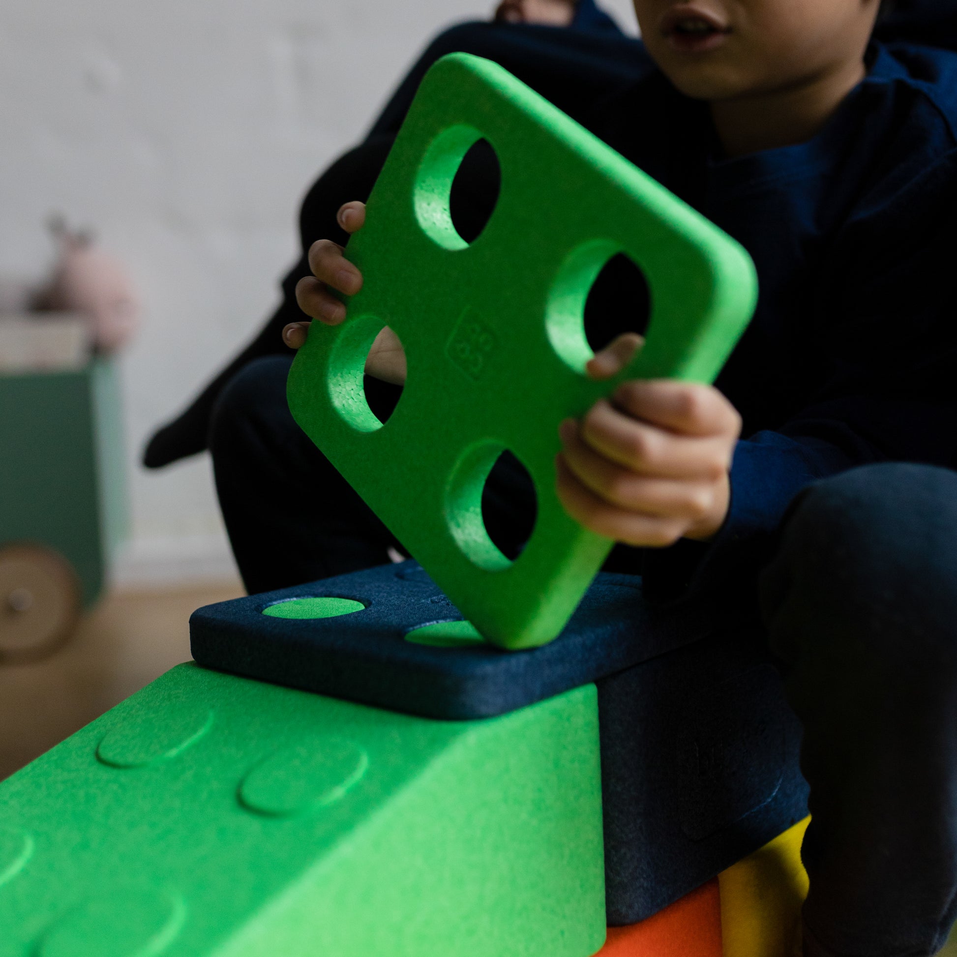 bygge-Spielbausteine bestehen aus 100% EPP (expandiertem Polypropylen), einem leichten, schadstofffreien und recycelbaren Material, das sicher für Kinder ist -ideal für kleine und große Entdecker!