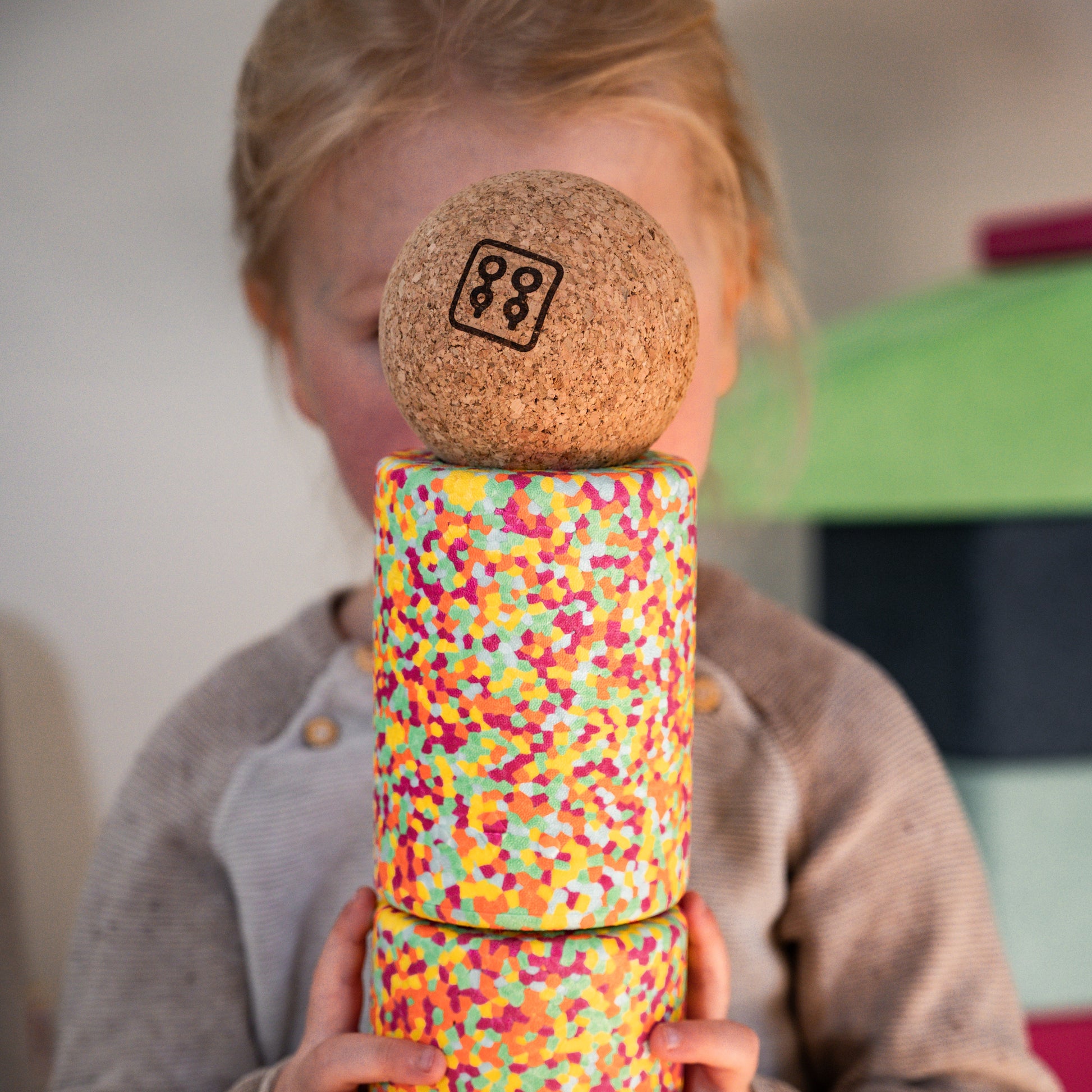 Der vielseitige Spielbaustein "BAP" bringt Schwung ins Spielen. Der große zylinderförmige Baustein lädt zum Experimentieren ein. Gemeinsam mit der Korkkugel entstehen unendlich viele Spielideen – von Wurf- und Zielspielen über kreative Bauwerke bis hin zu Balance- und Bewegungsspielen.