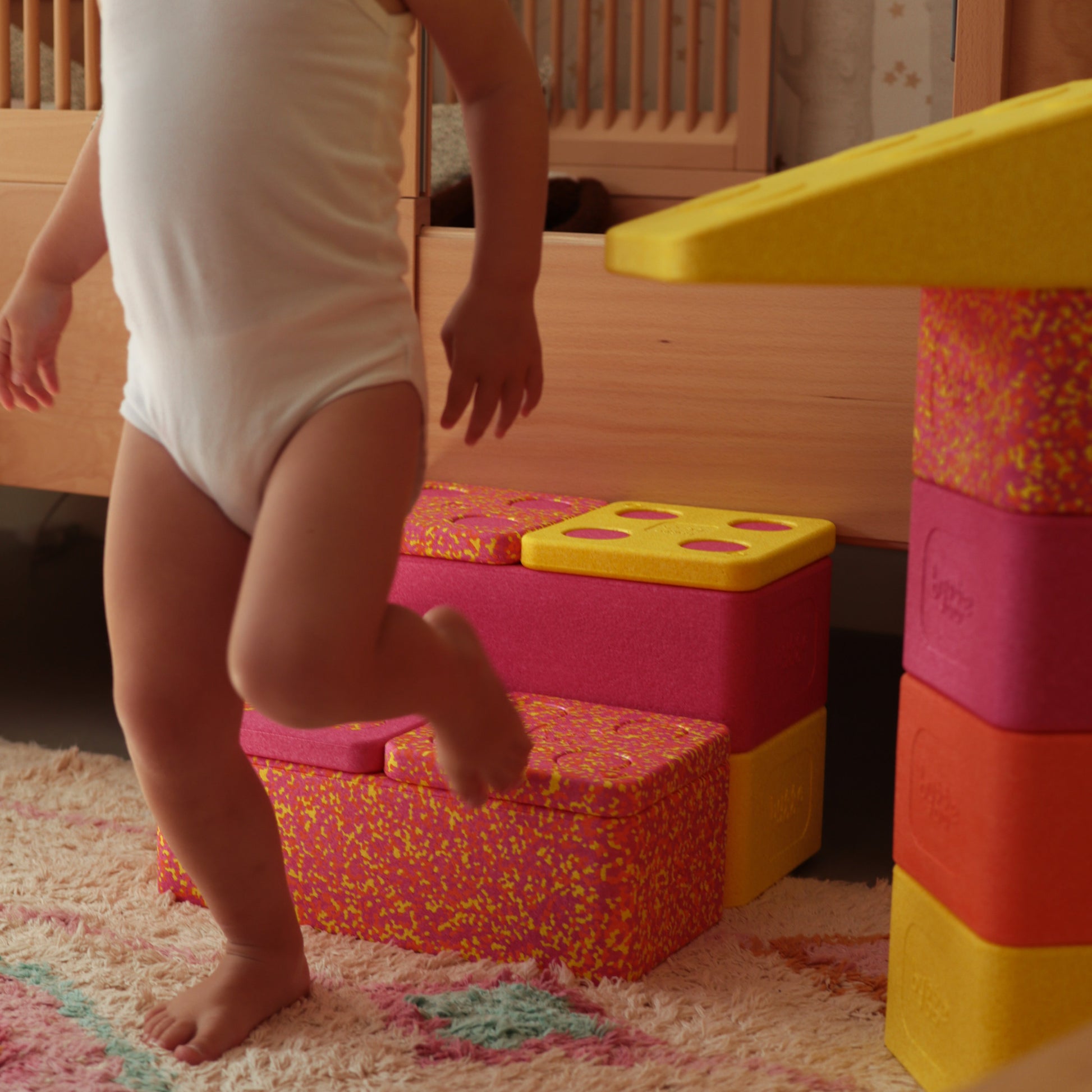 Unsere Spielbausteine sind sehr robust und widerstandsfähig. Sie halten ein Gewicht von bis zu 100kg aus!
