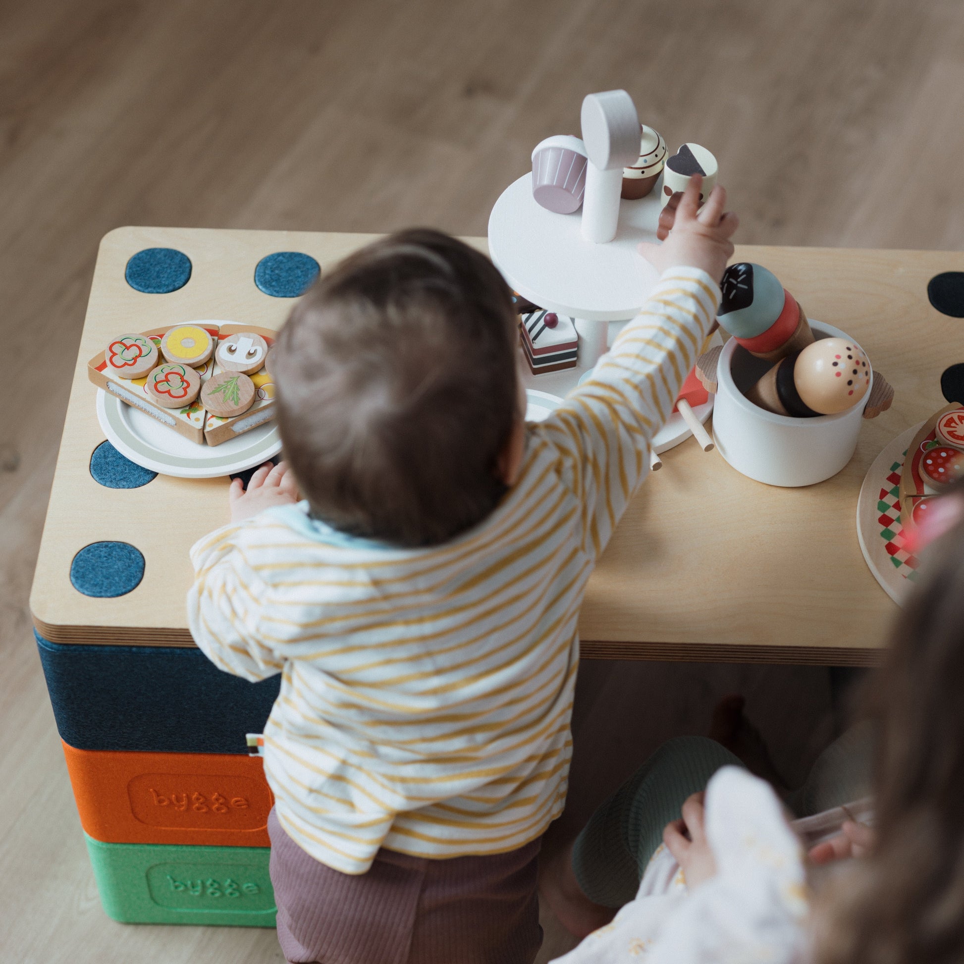 bygge setzt auf langlebige Materialien und eine ressourcenschonende Produktion in Deutschland (z.B. kurze Lieferketten, etc.). Die Steine sind recycelbar und darauf ausgelegt, viele Jahre vielfältig bespielt zu werden, sodass weniger Plastikspielzeug weggeworfen werden muss.