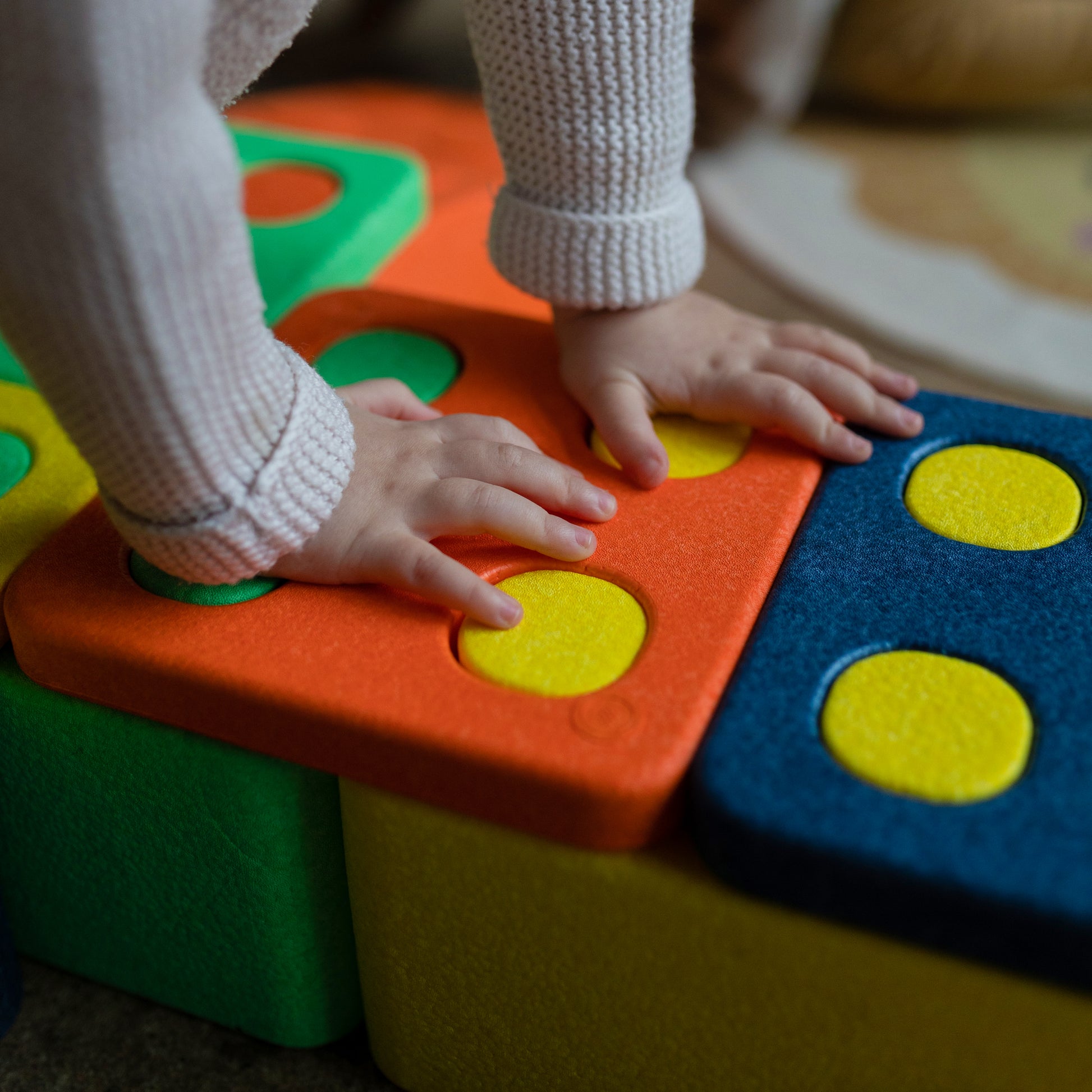 Unsere Spielbausteine sind sehr robust und widerstandsfähig. Sie halten ein Gewicht von bis zu 100kg aus!
